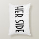 "Her Side" typed in an Art Deco inspired font on lumbar pillow. "His Side" also available.