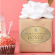 An old-fashioned "revival" font with an embossed appearance gives your apiary name an elegant look on this oval metallic gold honey label. The heraldic bee in the center of the label is from a 13th century baron's coat of arms. Bees were the most prevalent insects portrayed in heraldry and are symbols of industry and hard work. A metallic gold border is dotted with a cut honeycomb pattern.