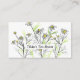 A botanical style business card featuring chamomile flowers drawn with black ink and touches of watercolor with a space for business name on the front. On the back is a soft shade of grey with areas to put your business details.