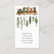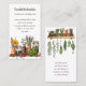 Herbs in jars, white business card template with text templates on both sides. Vertical orientation with dark brown, printed text on both sides for extra information, or delete the back wording to buy blank. Herbs are featured on both sides. On the front, a shelf with jars and stems is the design at the bottom. A shelf with herbs drying is the design at the top, on the back. Easily advertise yourself and your profession with your name at the top. Add a line beneath for certification or service provided. Customize the following lines with contact info, website location, shop location, etc., with more text on the back if needed.