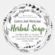Soap labels with a herbal, black and white wreath surrounding the text.