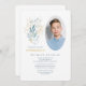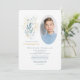 A nature, watercolor, photo invitation in blue and white with a touch of gold. Featured as a boy's communion invitation, it's suitable for either gender and birthday parties too. (<a href="https://www.freepik.com/free-photos-vectors/background">Background photo created by freepik - www.freepik.com</a>). (<a href="https://www.freepik.com/free-photos-vectors/watercolor">Watercolor vector created by azerbaijan_stockers - www.freepik.com</a>). <br/><br/>The card is easy to customize with your wording, font, font color, paper shape options and choice of six paper types.<br/><br/>Not exactly what you're looking for? All our products can be custom designed to meet your needs at no extra charge.<br/><br/>Simply contact us at askcottonlamb@gmail.com.<br/><br/>Coordinating products available: Just ask us!"