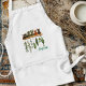 White bib apron with pockets. The design is herbs on a shelf with more herbs hanging to dry beneath the shelf. Add text in blue green script beneath the image. "Herbalist" is the sample wording, or add a name. The text aligns to the right.