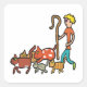 Herding cats expression illustrated by cat herding shepherd with crook guiding a herd of cats.