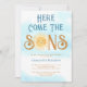 You can apply the design of your Here Come The Sons Baby Shower Invitation to other items for a party such as stickers. The same goes for all of our digital products - any digital product/ design you purchase can also be used on any Zazzle product.