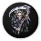 The grim reaper is looking for souls on the list of the dead. He's just doing the job destiny has given him. It's not fun, but someone has to take on this most grievous task. When he comes do not fear him for he takes you to a place where all things are beautiful and there is no more pain.
