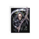 The grim reaper is looking for souls on the list of the dead. He's just doing the job destiny has given him. It's not fun, but someone has to take on this most grievous task. When he comes do not fear him for he takes you to a place where all things are beautiful and there is no more pain.