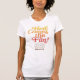 The material is a great quality that is hard to find with most tee shirts. Fabric was not see-through or thin at all, but was also very soft and comfortable. The shirt description states that it runs a little small, so I sized up one size for a perfect fit! I would definitely buy this type of tee shirt again because I love the fit and high quality fabric that I cannot find anywhere else. The printing was perfect and just as pictured. Loved the cute quote and really enjoy the tee in both the quality and design. I love quirky typography designs and funny quotes and I am extremely pleased with the overall quality and value I get at Zazzle!