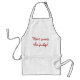 The apron is of very good quality. I used it while icing cookies. The dark colored icing washed off of the apron very well! The neck strap is sturdy and easy to resize on the adult size apron. The print was clear and well defined. I am glad I was able to personalize with name.