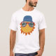 Celebrate moms-to-be with this fun baby boy Here Comes the Sun graphic tee. It has a fun illustration of a cartoon sun wearing sunglasses and a bucket hat in yellow, orange, red and blue.
