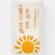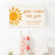 This cute baby shower banner is decorated with a yellow watercolor sun and says "Here Comes The Son" in stylish retro typography on a soft cream background.