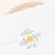 This cute boy's baby shower sticker features the text "Here Comes The Son" in yellow typography with a smiling watercolor sun. Easily customizable. Original Watercolor © Michele Davies.