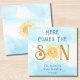 This cute sunshine boys' baby shower guest book features the text "Here Comes The Son" in blue retro typography with a cute yellow watercolor sun on a blue sky background. Easily customizable. Original Watercolor © Michele Davies.