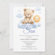 Celebrate the Mom-to-be with this cute, "Here Comes The Son," baby shower invitation, featuring a watercolor bear clouds and sun. Personalize the invitation with your information. This whimsical design is perfect for a baby boy.
