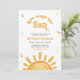 Plain white envelopes are included with paper invitations and will come to fit the invitation size you select. If you don’t need the envelopes, you may choose to not receive them by selecting the dropdown below "Envelopes" and choosing "None." If you’d like to have a design on your envelopes, you can browse all of these available envelopes to find the design that complements your Here Comes The Son Baby Shower Invitation.