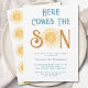 You can pick to download your Here Comes The Son Baby Shower Invitation from 4 file types: PNG, JPG, Standard PDF, and Print PDF. These 4 file formats have been selected so they cover all your inviting needs. PNG and JPG are great for sending your invitation digitally and PDF and Print PDF are great if you want to print your invitation yourself.
