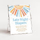 Make your event special with this Sunshine Baby Shower with our cute and lovely printable Late Night Diapers Sign featuring adorable Here Comes the Sun Baby Shower theme. Download, personalize, and create lasting memories with this perfect touch for your joyous celebration!