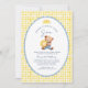 Here Comes the Son Bear Baby Shower Invitation | Sunshine Boy Shower Gingham - Celebrate the arrival of your little ray of sunshine with this sweet Here Comes the Son Bear Baby Shower Invitation. The design features an adorable baby bear hugging a smiling sunshine, surrounded by a soft blue scalloped frame and cheerful yellow gingham background.