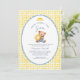 Here Comes the Son Bear Couples Baby Shower Invitation | Sunshine Boy Shower Gingham - Celebrate the arrival of your little ray of sunshine with this sweet Here Comes the Son Bear Baby Shower Invitation. The design features an adorable baby bear hugging a smiling sunshine, surrounded by a soft blue scalloped frame and cheerful yellow gingham background. Invitation features your beautiful photo on the back with QR code for Baby Registry.