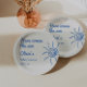 As you see this unique and elegant summer here comes the sun shower paper plate has a well designed template. With blue hand drawn sun hand written name and date in blue. And cream boho background . Which you can customize easily by clocking on the personalize button.