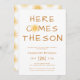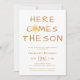 Yes, you can print on the back of your invitation for free! Most designs already have a corresponding design on the back that can be personalized using the Design Tool and going to Layers. This is a great way to communicate more information or further personalize your Here Comes The Son Boho Baby Shower Invitation. The option is really up to you.