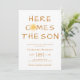 Plain white envelopes are included with paper invitations and will come to fit the invitation size you select. If you don’t need the envelopes, you may choose to not receive them by selecting the dropdown below "Envelopes" and choosing "None." If you’d like to have a design on your envelopes, you can browse all of these available envelopes to find the design that complements your Here Comes The Son Boho Baby Shower Invitation.