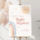 Welcome your guests to the celebration with our charming baby shower welcome sign! Featuring a whimsical smiling sun and a delightful watercolor rainbow, this sign sets the tone for a joyful gathering. Personalized with the mom-to-be's name and location of event, it adds a special touch to your event decor. Crafted with retro fonts and warm neutral colors, it exudes both nostalgia and modern elegance, perfect for welcoming guests to celebrate the upcoming arrival. Let's make your baby shower truly memorable with this personalized welcome sign, spreading warmth and excitement to all who attend! Part of the 'Here Comes the Son' baby shower collection.