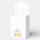 This cute sunshine-themed baby shower favor box features a watercolor illustration of a smiling yellow sun and "Here comes the Son" in stylish blue typography. Perfect for a boy's baby shower. Easily customizable. Original Watercolor © Michele Davies.