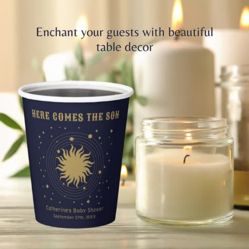 Our meticulously curated collection features an exquisite color gold, evoking the mysterious beauty of the night sky, adorned with twinkling stars, serene planets, and the gentle glow of the sun. Every detail of the "Here Comes the Son" collection is designed to transport your baby shower into a realm of celestial wonder. Let the magic of the universe bless your little star with a shower that's as boundless as your love for him, creating memories that will twinkle in your hearts forever.
