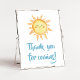 Make your event special with this Sunshine Baby Shower with our cute and lovely printable Thank you for Coming Sign featuring adorable Sonshine Baby Shower theme. Download, personalize, and create lasting memories with this perfect touch for your joyous celebration!
