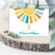 Drenched in a retro sunshine design, this table number card is a wonderful blend of nostalgic aesthetics and contemporary functionality. The motif is a stunning array of muted yellow, blue, orange, and terracotta hues that create a warm and inviting atmosphere right off the bat.