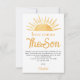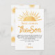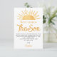 This sun-themed boy's baby shower thank you card features the text "Here Comes The Son" in stylish typography with a yellow watercolor sun. Easily customizable. The back is decorated with a sun pattern. Original Watercolor © Michele Davies.