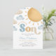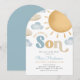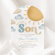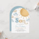 This "Here comes the son" baby shower invitation combines boho charm with a retro flair, making it an ideal choice for your sunshine-themed baby shower with yellow and blue tones. Choose the arch shape for a modern look. Celebrate in style and make your special day memorable with this delightful invitation.