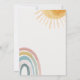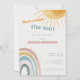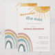 A warm and cheerful “Here Comes the Sun” baby shower invitation with a soft rainbow and sunshine design, perfect for celebrating a little ray of sunshine.