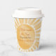Watercolor painted Sun in Sunshine yellow, orange colors themed bridal shower decor Paper Cups with text " here comes the sun she found the one!" you can personalize to your needs. Perfect for a summer or fall bridal shower selebration. Matching items you can find in collection from my store PatternDigitPics.