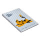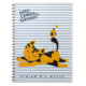 NewParkLane - Here comes trouble! Cute personalized Kids' Notebook, with a sweet sleeping cat cartoon in orange and blue and a little bird on its tail, against a soft orange striped background, and a text template for your name or other personal message.