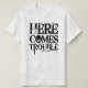 Here Comes Trouble :: Gorgeous, fun and grungy our Here Comes Trouble shirt features a vintage distressed Rock Typography and a wild little emoticon at the center. Our Here Comes Trouble design is full of bad girl attitude and fun.com
