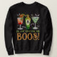 This 'Here for the Boos' Halloween cocktails design features two chilling cocktails one with a jack o'lantern stirrerer and the other with eye balls and a tarantula stirrer, in the middle is a deadly poisonous potion. This design has a green, orange and black color palette. You can modify the text on both the front and back. See the whole matching collection.