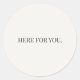 A calm round sticker featuring Here for you. Designed to express reassurance and presence without assumptions, this neutral sticker works well for cards, journals, planners, and everyday support. Part of the Everyday Support Series, designed for gentle, mix-and-match use.