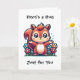 A super duper cute card with a squirrel offering up a big hug, just in case you need it! A kawaii chibi cartoon squirrel in a patch of flowers with arms outstretched.