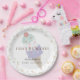 This sweet and cute "Here's the scoop!" gender-neutral ice cream themed baby shower paper plate features a mint green, a white vanilla and a purple ice cream with sprinkles and a cherry on a white background with faux gold doodled dots. Personalize for your needs. You can find more matching products at my store.