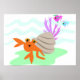 A cute orange hermit crab crawling out of its shell. This design looks really effective on these Poster