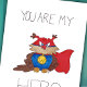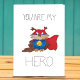 "You are my hero" postcard featuring the best superhero ever: Wonder Owl.