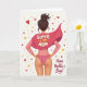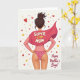 Designed with a confident adult figure shown from behind on a bright white background, this card centers on a woman with dark hair gathered into a high bun and a steady, hands-on-hips stance. She wears a rose-pink long-sleeved top and a flowing cape in deeper fuchsia that drapes outward like a gentle embrace, adding a sweet, affectionate tone ❤️. Across the middle of the cape’s back, the words “SUPER STEP MOM” appear in large, light-colored letters that stand out clearly. Below the top, heart-decorated briefs add a flirty, caring touch, like a private wink of closeness. Around her, small red hearts, golden stars, and tiny red-and-gold dots scatter across the background, creating a celebratory frame 🌼. In the lower right area, “Happy Mother’s Day!” is written in a flowing handwritten style in warm red, angled slightly as if signed with care. The overall palette blends warm pinks, rich reds, and soft gold accents, with the cape’s fuchsia folds forming the strongest shape in the scene.