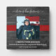 Heroes Live Forever! Honor your beloved firefighter and with this Thin Red Line Firefighter Memorial Photo plaque. Personalize with your firefighters photo, name and dates. Perfect for firefighter memorial for family or fire departments to honor a fallen fireman. Quote: "Greater love has no one than this: to lay down one's life for his friends. John 15:13". In Loving Memory Firefighter Memorial Plaque. COPYRIGHT © 2020 Judy Burrows, Black Dog Art - All Rights Reserved. Heroes Live Forever Fallen Firefighter Memorial plaque