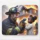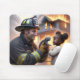 Heroic Firefighter With Kitten Mouse Pad