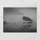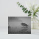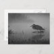 This post card features a sketch-edited black and white photo of a Great Blue Heron, fishing in a pond in early morning mist.