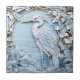 Heron Sea Bird Art Nouveau Faux Relief Left Blue Ceramic Tile