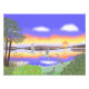 Modern art scenic and colorful. A lake, blue and orange sky, low sun, reflections in the water, and three Herons. Photo prints, canvas prints and cards.