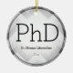 An ornament for a PhD graduate with a black and gray color scheme, and a herringbone pattern in the background. It shows the degree, name, and year. Simply customize this ornament, add it to your cart, and have a keepsake of this major achievement.